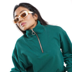 Essential Q-Zip Crop Sweatshirt- Evergreen