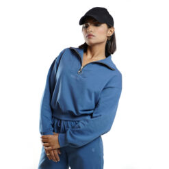 Essential Q-Zip Crop Sweatshirt- Indigo
