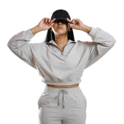 Essential Q-Zip Crop Sweatshirt- SAND