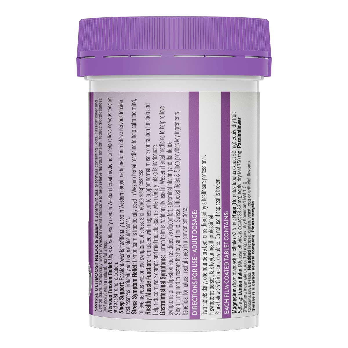 VALERIAN & MELATONIN FREE: Our Swisse Ulitboost Relax & Sleep supplement uses natural ingredients to help give you a refreshing night’s sleep without morning grogginess. Our non-groggy formula contains herbal remedies such as passionflower that helps encourage a restful sleep while reducing tenseness, restlessness, and irritability.